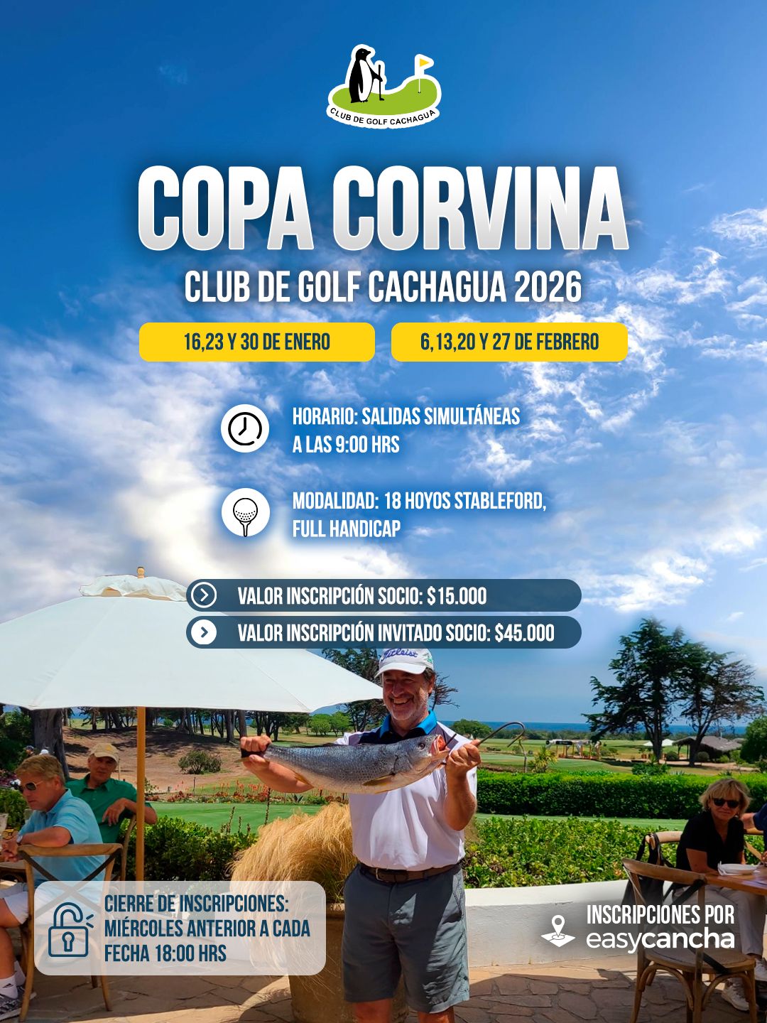 Como es tradición, el torneo se desarrollará bajo la modalidad Stableford a 18 hoyos, con salidas simultáneas a las 9:00 hrs y aplicando el full handicap de cada jugador. El valor de la inscripción es de $15.000 para socios y de $45.000 para los invitados de socios. Las inscripciones deberán realizarse a través de la plataforma easycancha, cerrándose el miércoles anterior a cada fecha de competencia a las 18:00 hrs.