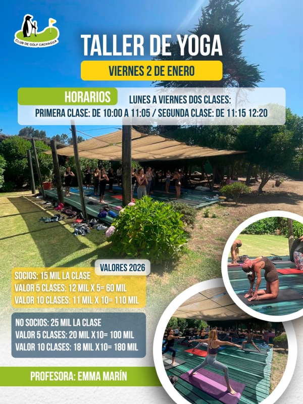 Para inscripciones o más información, pueden contactarnos en recepcion@clubdegolfcachagua.cl o acercarse a recepción. ¡Los esperamos para comenzar el año con energía y equilibrio!